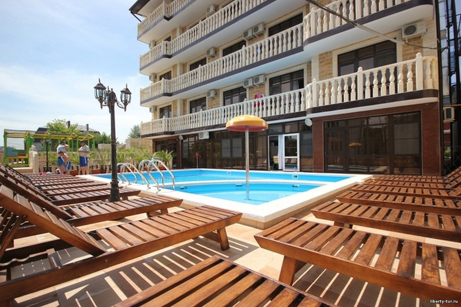 К услугам отдыхающих: бесплатный Wi-Fi, закрытая территория оснащена системой видеонаблюдения, открытый бассейн с подогреваемой водой с мелководным сектором для детей, шезлонги для отдыха, детская анимация 1 раз в 7 дней, детская игровая площадка, кулер с горячей и холодной водой (имеется на каждом этаже). Парковка перед отелем (на улице), бесплатная - неохраняемая. В гостинице охраняемая платная автостоянка (парковочный этаж на 13 мест). Стоимость одного места ~400 руб.сутки. Места на парковке перед отелем и охраняемой платной стоянке не бронируются, занимаются по приезду (при наличии). В период с 22:00 до 09:00 в гостинице установлен режим тишины. На территории гостиницы курение разрешено только в специально отведенных местах. Курение в номерах и в других помещениях запрещено, штраф 5000 рублей. Также запрещается курение кальянов в номерах и местах общего пользования.