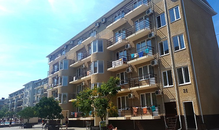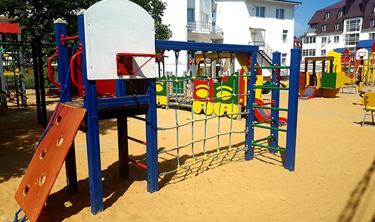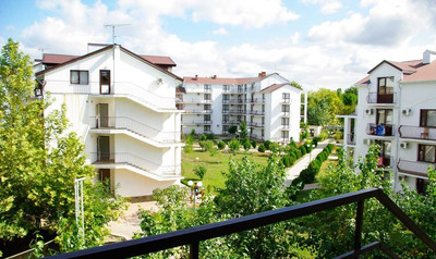 Элегантные современные здания пансионата высотой в 3-5 этажей размещены среди великолепных южных растений, ухоженных клумб.