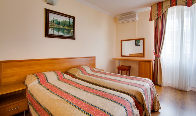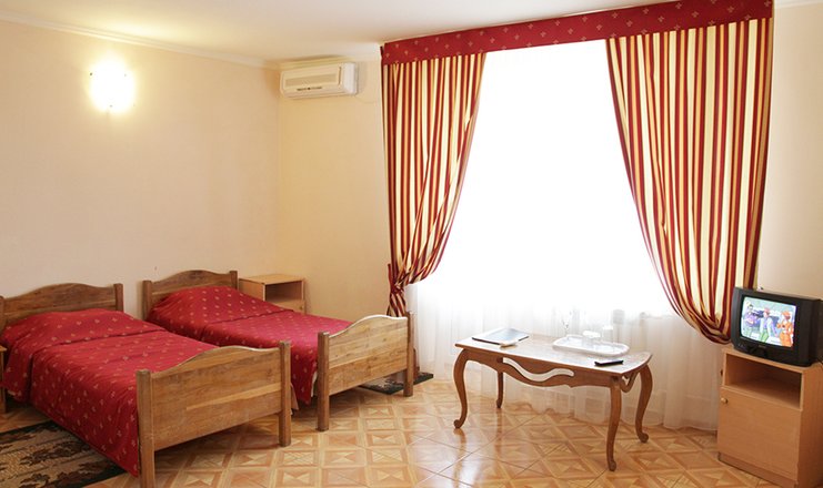 - 2-местные и 3-местные номера с удобствами. В номерах туалет, душ, телевизор, холодильник, кондиционер.