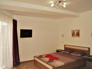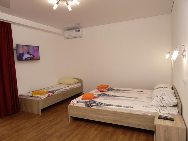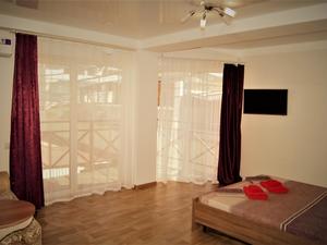 В номере: санузел, душ, туалетные принадлежности (шампунь, гель для душа, мыло), двуспальная кровать, односпальная кровать, диван, кресло-кровать, прикроватные тумбочки, шкаф, стол , стулья, вешалка, зеркало, сплит-система, телевизор ЖК, холодильник, чайный набор посуды.