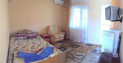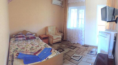 Гостевой комплекс «Виктория» Гостиница находится в лесном массиве на расстоянии 400 м. от моря. Гости нашего комплекса имеют возможность отдохнуть на песчаном, охраняемом пляже ВДЦ "Радужный", вход на пляж для отдыхающих в нашем комплексе 50% от реальной стоимости билета. В распоряжении гостей нашего комплекса: бесплатная автостоянка, бассейн, зона отдыха, мангал, уютные беседки для теплых вечеров в кругу семьи и друзей. Также имеется общая кухня для самостоятельного приготовления пищи и необходимая для этого посуда.