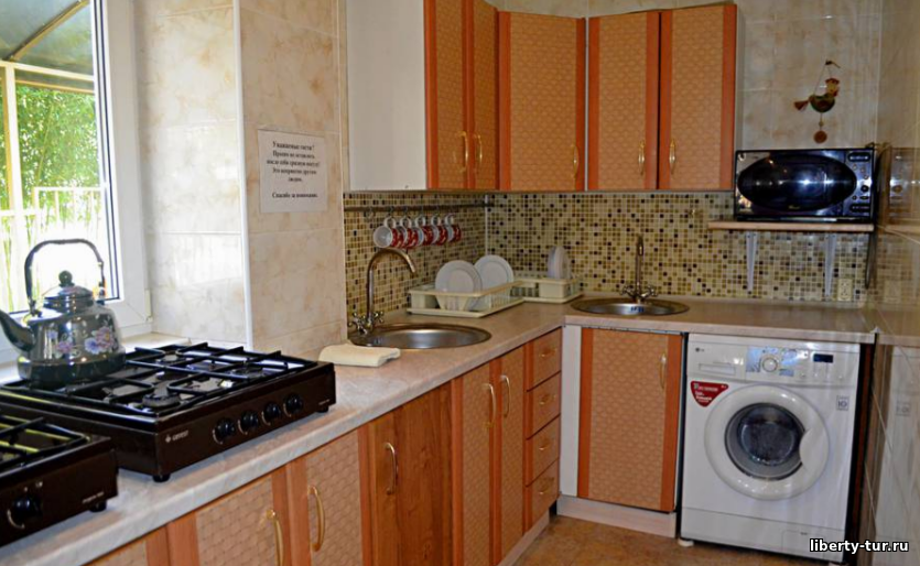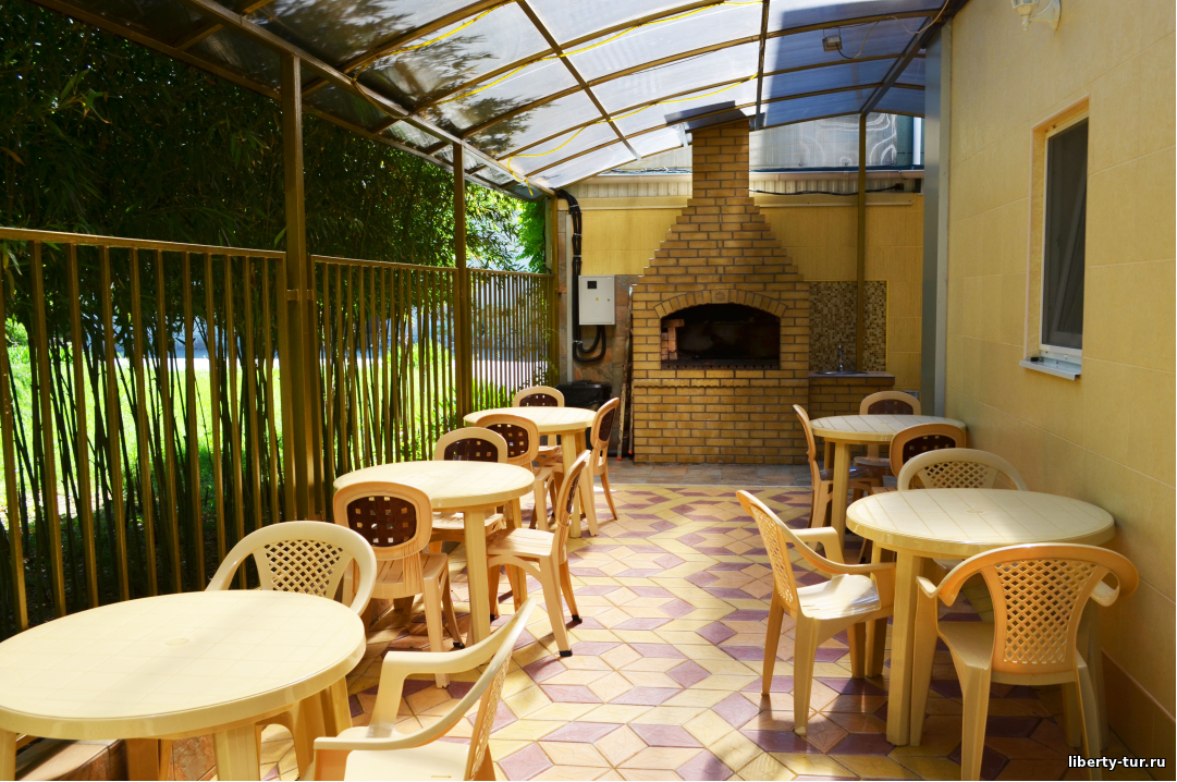 К услугам отдыхающих: бесплатный Wi-Fi, уютная зеленая территория с экзотическими растениями, столики и лавочки для отдыха, мангальная зона (пользование может быть ограниченно в связи с действием Правил пожарной безопасности), детская площадка, гладильные принадлежности (доска и утюг), стиральная машина.