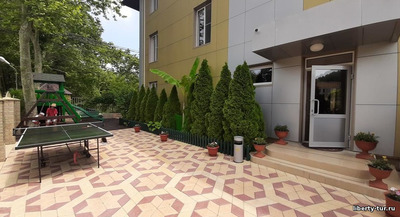 Пляж: центральный галечный, в 250 метрах от гостиницы.
