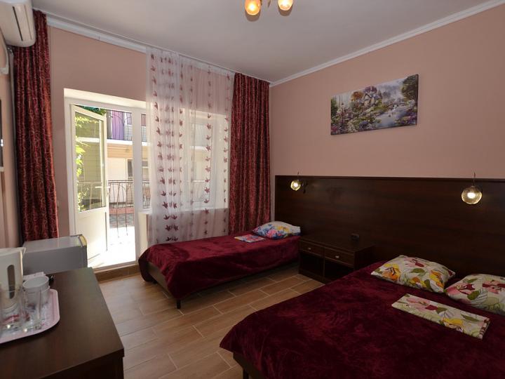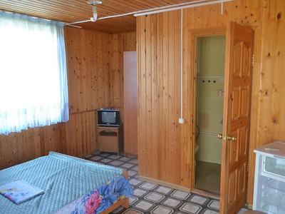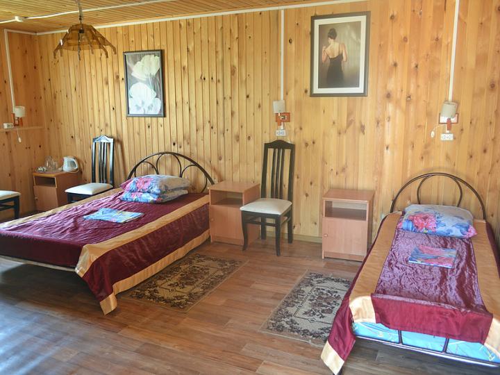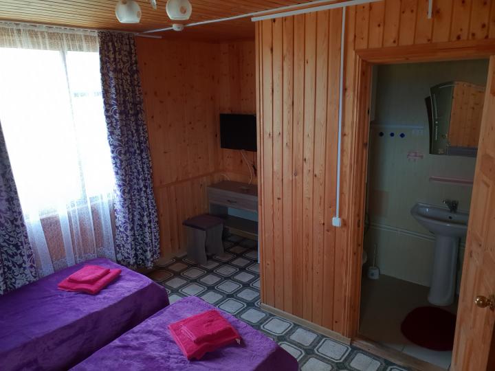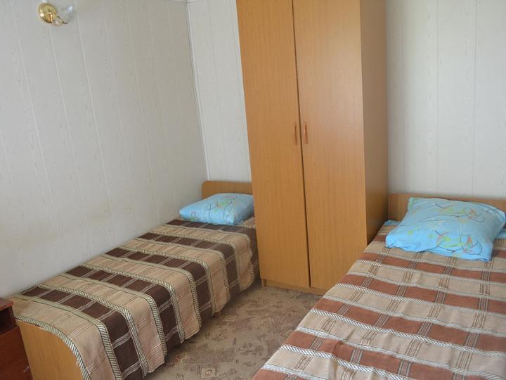 - 2-, 3-, 4-местные номера эконом с удобствами на территории. В номерах: мебель, телевизор, холодильник, кондиционер. Душевые и туалеты находятся в отдельно стоящем санитарном блоке. В четырехместном номере две комнаты.