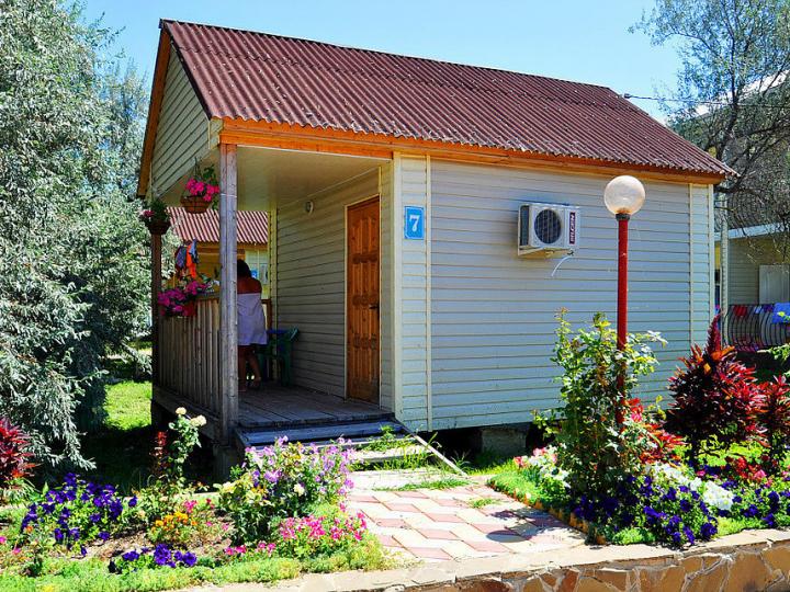 - 2-, 3-, 4-, 5-местные отдельно стоящие домики с удобствами, телевизором, сплит-системой, холодильником, чайником, террасой с зоной отдыха (стол и стулья). Четырехместные и пятиместные домики двухкомнатные: в одной комнате двуспальная кровать, в другой двуспальный диван и кресло-кровать (в 5-местных).