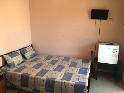 2-, 3-, 4-, 5-местные номера с удобствами: односпальные или двуспальная кровати, шкаф, стулья, журнальный столик, стол, вешалка, зеркало, кондиционер, телевизор, ТВ, интернет, холодильник, санузел с душем.