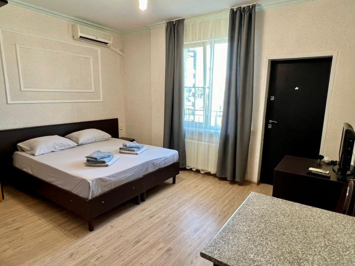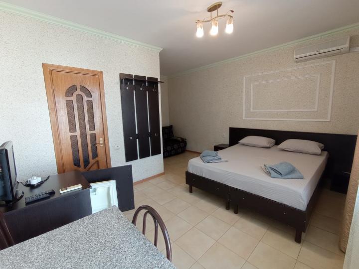 Размещение в трехэтажном корпусе в 2-, 3-, 4-местных номерах стандарт. В номере: мебель, санузел, ТВ, холодильник, сплит-система, Wi-Fi, общий балкон. В 2-, 3-местных номерах две односпальные кровати, которые можно соединить в одну и диван. В 4-местных номерах две кровати и двухъярусная кровать.