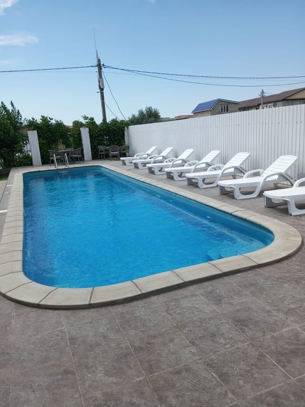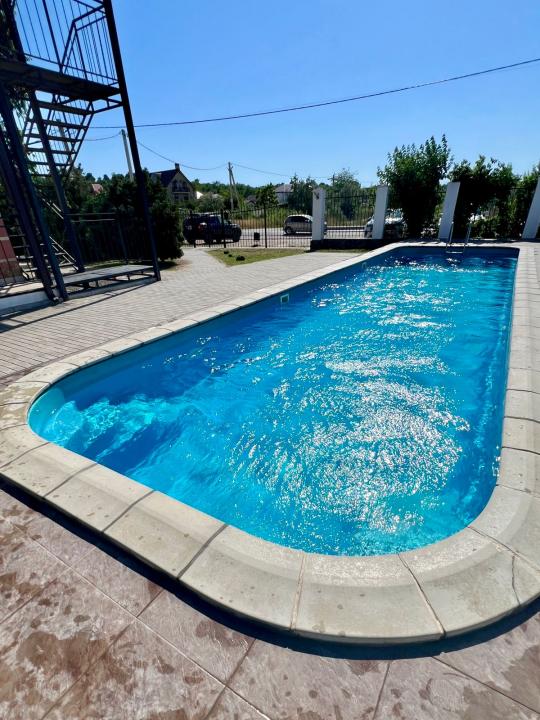 Инфраструктура. На территории есть: взрослый и детский бассейн с постоянной системой фильтрации воды, детская площадка, летняя кухня с зоной отдыха, мангалы.