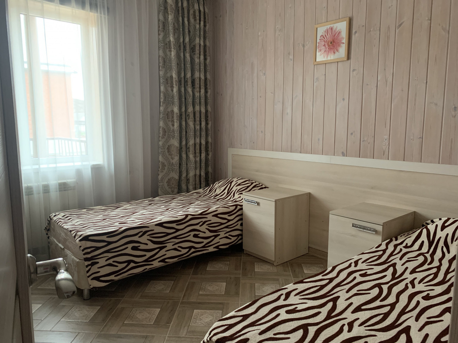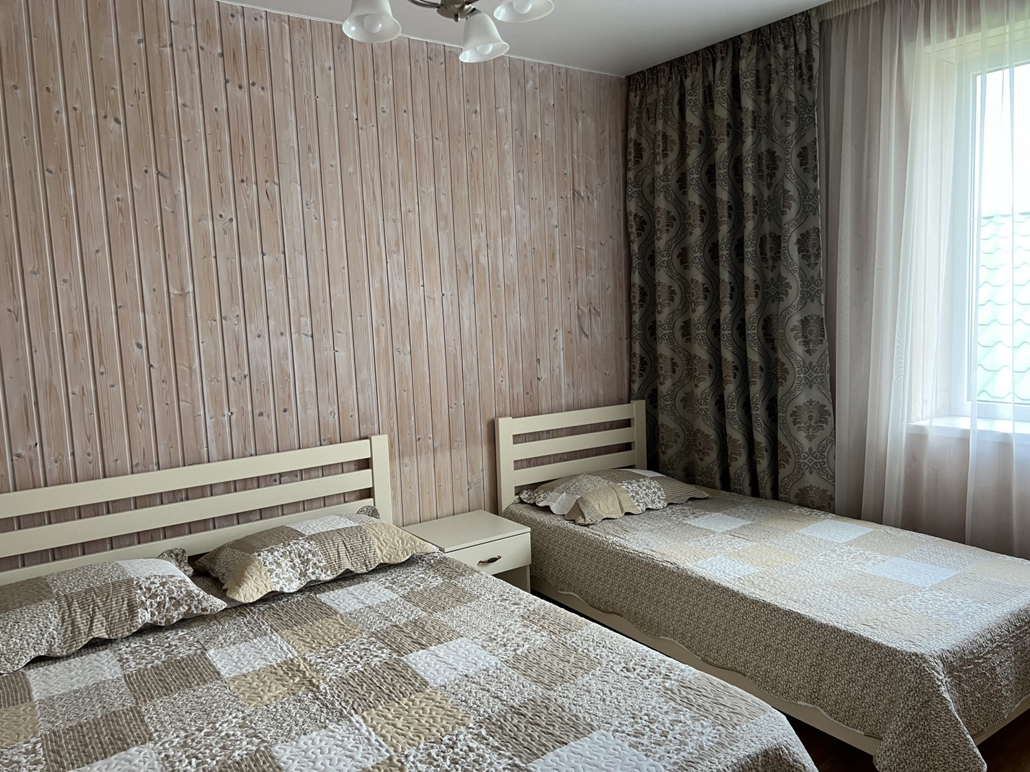 3-4-5-местный 2 комнатный номер с удобствами. Комфортабельный двухкомнатный номер с двумя непроходными спальнями, рядом с номером небольшая терраса со столиком и креслами, сушилкой для белья. В некоторых номерах имеется балкон. В одной спальне - две односпальные и одна двухъярусная кровати, прикроватные тумбочки, шкаф, кондиционер. В другой спальне - двухспальная кровать, прикроватные тумбочки, ЖК-телевизор. Кровати из массива с ортопедическими матрацами и основаниями. В коридоре - холодильник, микроволновая печь, электрический чайник, фен.