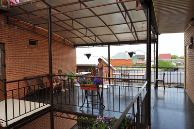 Территория составляет 850 кв. м. Для проживания гостей предлагаются два корпуса с комфортабельными номерами.