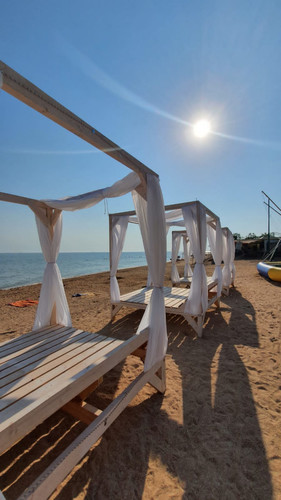 Поблизости находятся кафе и шашлычные, дельфинарий, центральный пляж, грязевое озеро.