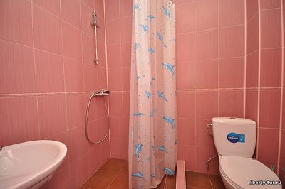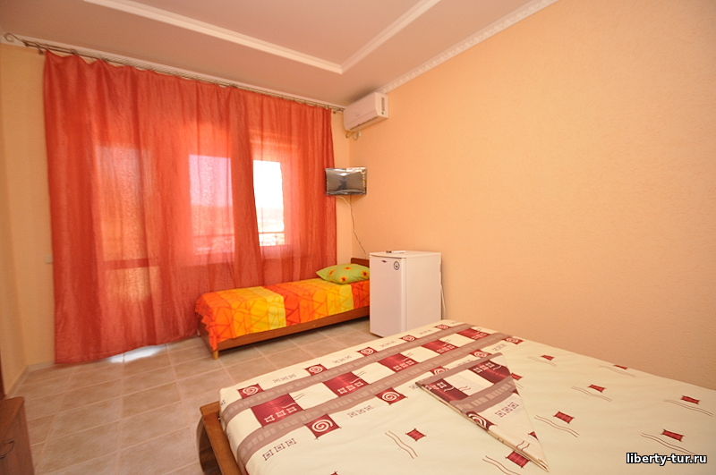 • 2-, 3- местные номера с удобствами. В номерах туалет, душ, телевизор, холодильник, кондиционер. Балкон общий проходной, индивидуальных балконов нет.
