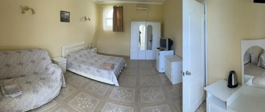 - 2-местные улучшенные номера с удобствами однокомнатные / двухкомнатные. В номерах туалет, душ, телевизор, холодильник, кондиционер. Площадь номера 28 м2. Возможно предоставить одно или два дополнительных места (двуспальный диван). В двухкомнатном номере комнаты проходные: 1 комната- двуспальный диван, холодильник, дверь в санузел, 2 комната - двуспальная кровать, телевизор, кондиционер.