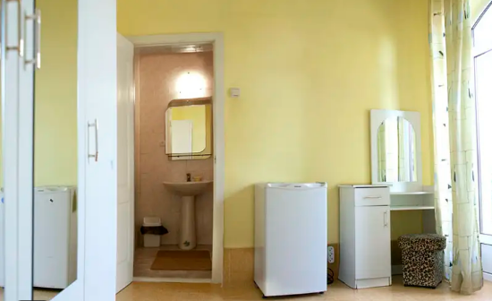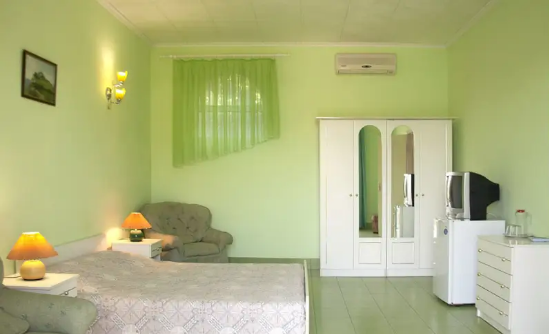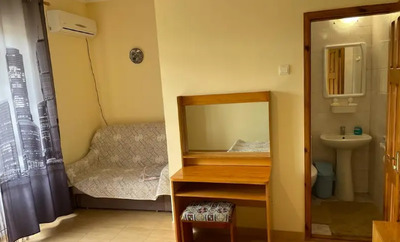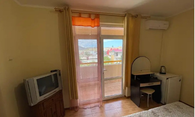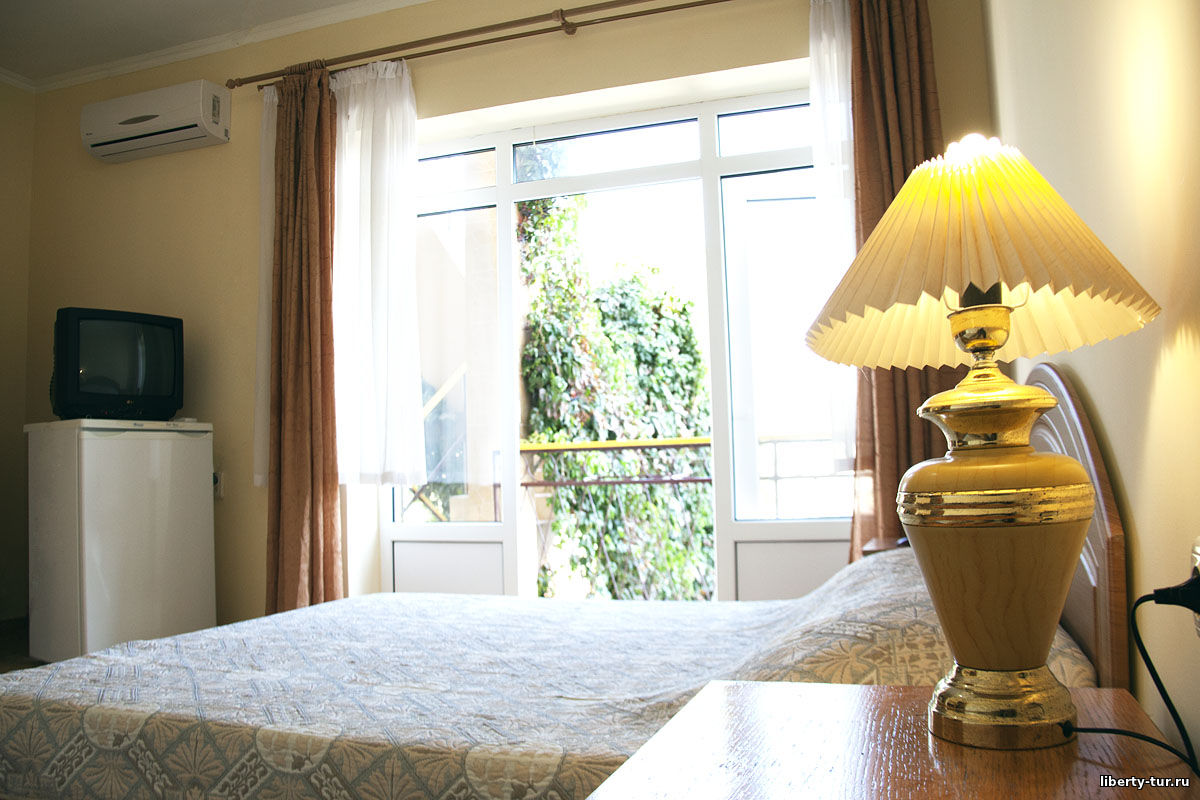 - 2-местные номера с удобствами. В номерах туалет, душ, телевизор, кондиционер. Площадь номера 12 м2. Холодильник на кухне на 4 номера. Дополнительных мест нет.