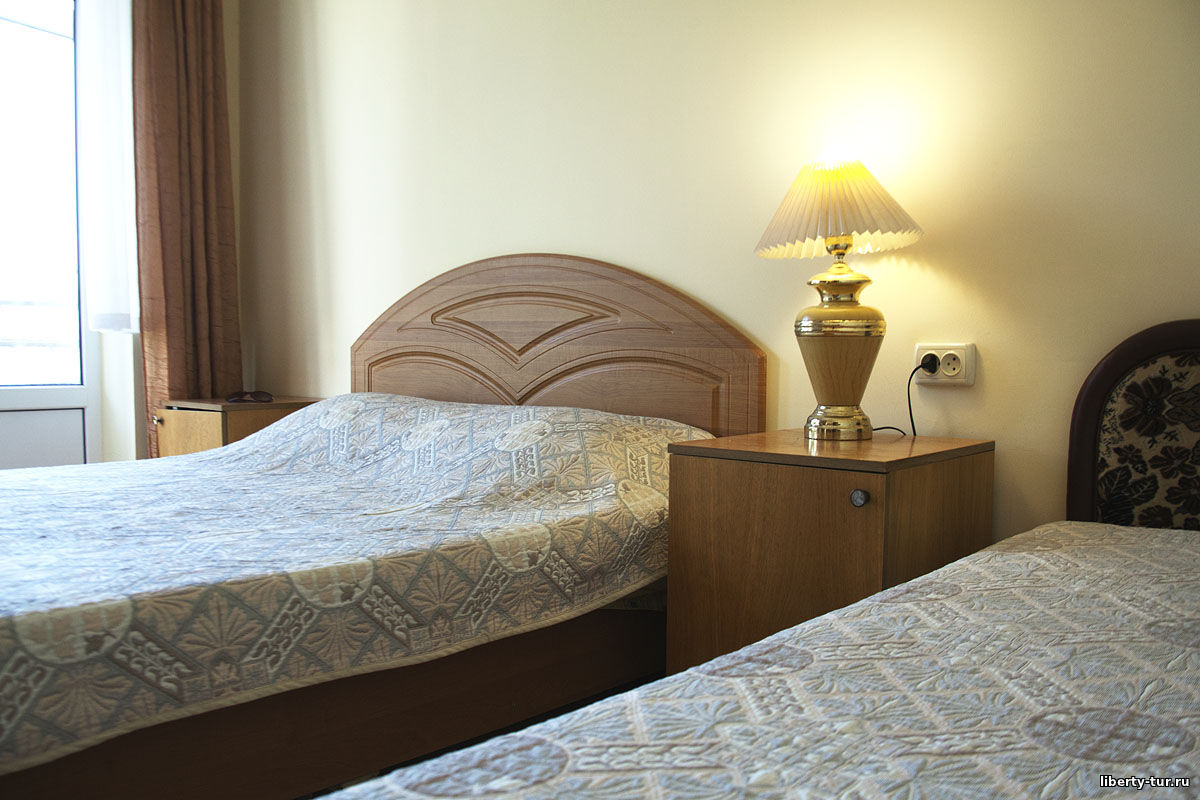 - 2-местные номера с удобствами. В номерах туалет, душ, телевизор, холодильник, кондиционер. Площадь номера 16 м2. Возможно предоставить одно или два дополнительных места (двуспальный диван).