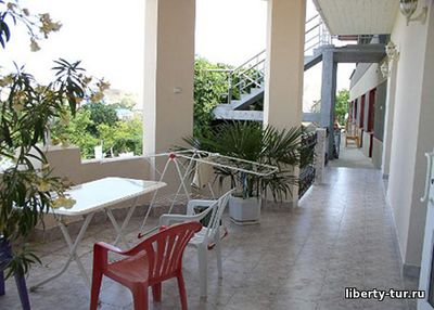 К услугам отдыхающих: большая, утопающая в зелени и цветах, территория с тремя беседками для отдыха. Закрытый двор обеспечивает безопасность гостей, игры детей и сохранность вещей. Бесплатный Wi-Fi на территории.