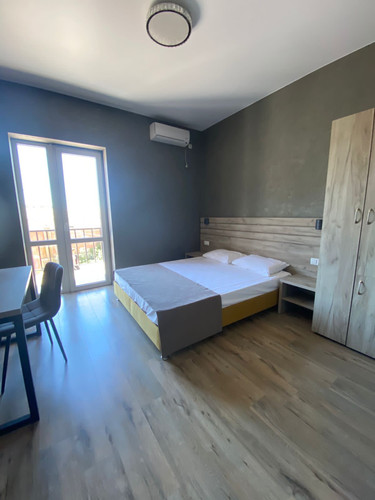 - 2-местные номера с удобствами. В номерах туалет, душ, телевизор, холодильник, кондиционер. Индивидуальных балконов нет..