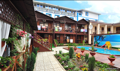 Расположение: гостевой дом находится в центре поселка Витязево, напротив входа на набережную – развлекательного комплекса "Паралия", на улице Роз. Недалеко от гостиницы находится аквапарк "Олимпия", аттракцион "Византия" и дельфинарий.