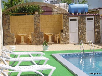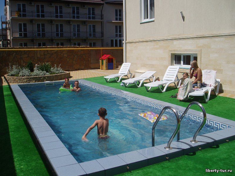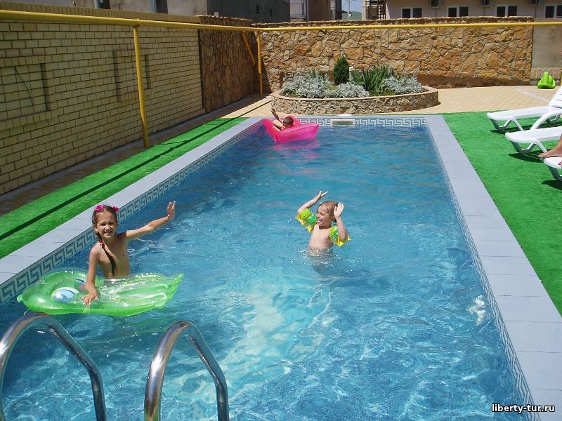 Для любителей водных процедур имеется бассейн под открытым небом рядом с уютной беседкой, в которой можно спокойно и удобно отдохнуть на свежем воздухе. Для детей имеется детская игровая площадка.