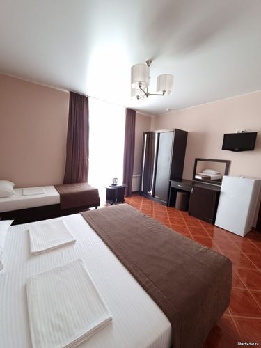 - 3-местные номера с удобствами. В номерах туалет, душ, телевизор, холодильник, кондиционер, фен, сейф, балкон.
