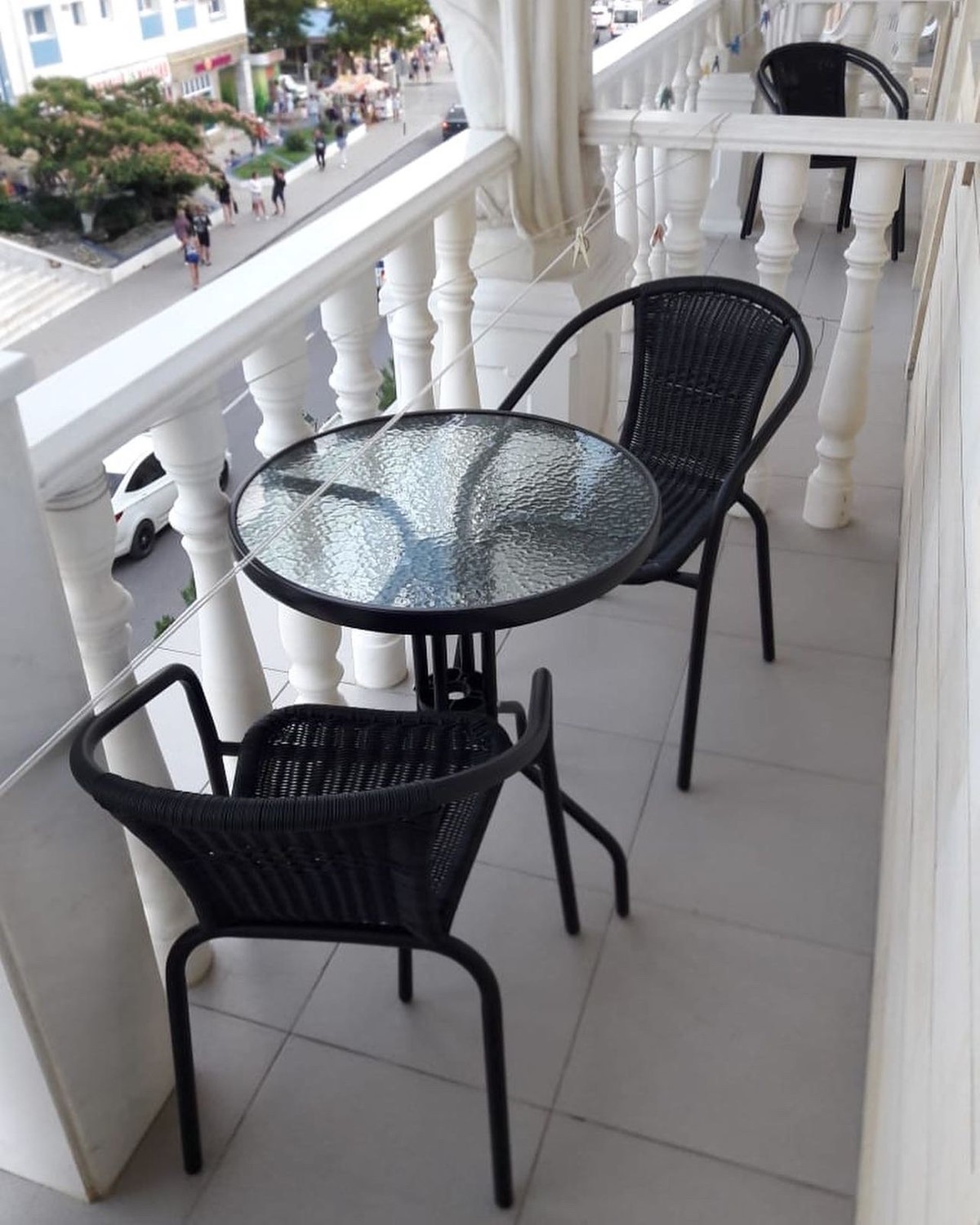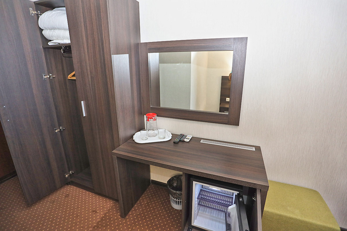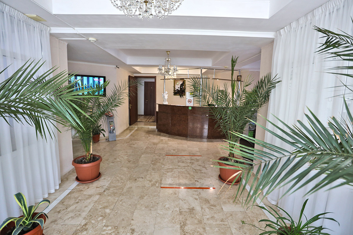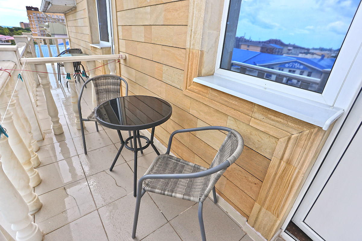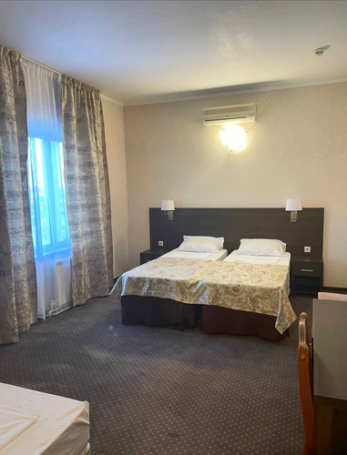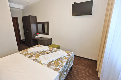- 2-местные номера с удобствами. В номерах туалет, душ, телевизор, холодильник, кондиционер, фен, сейф, балкон.