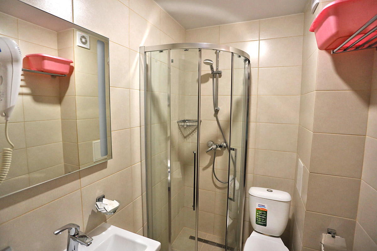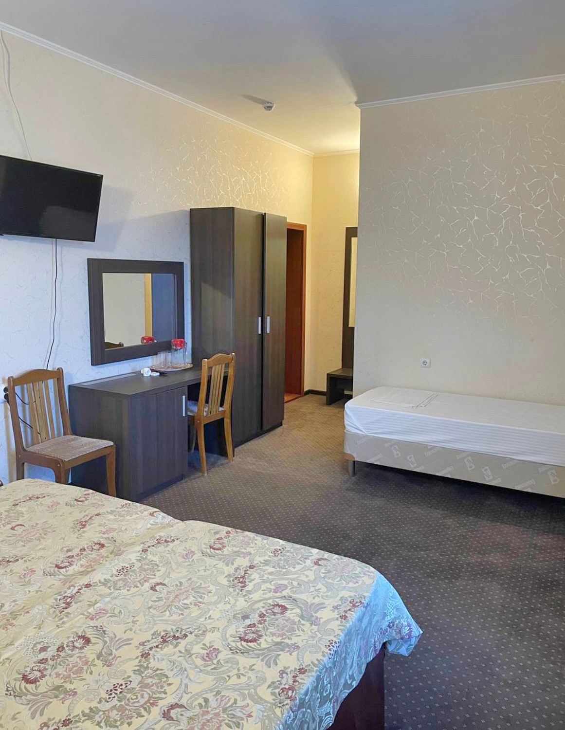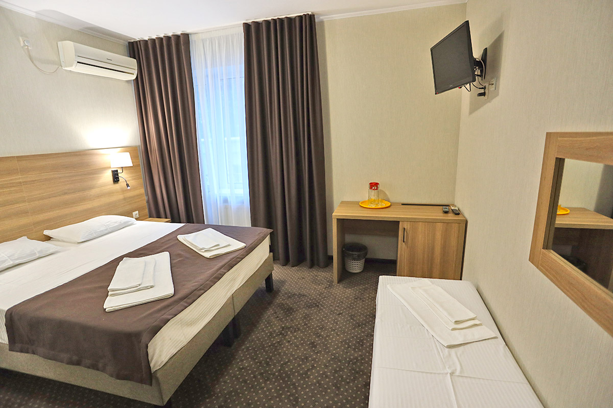 - 3-местные номера с удобствами. В номерах туалет, душ, телевизор, холодильник, кондиционер, фен, сейф.