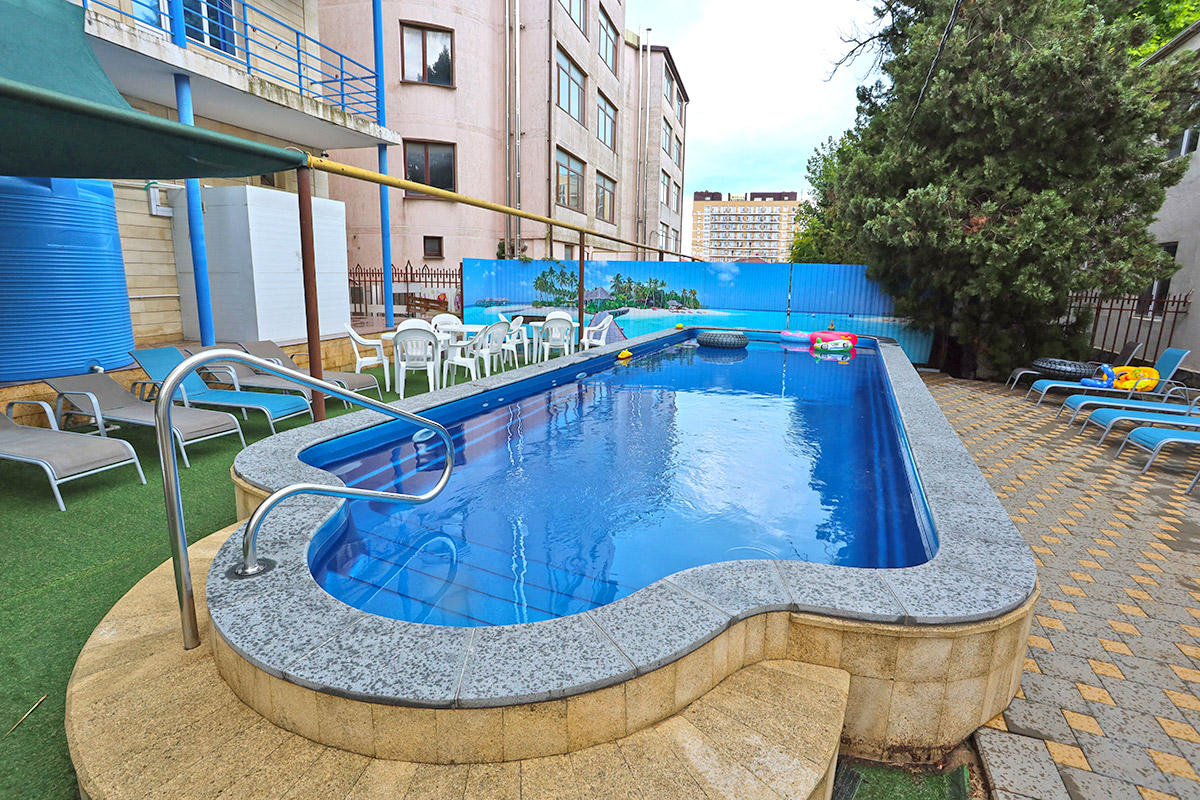 К услугам отдыхающих: бесплатный Wi-Fi на территории, подогреваемый бассейн (11х4 метров) с гейзером, терраса с шезлонгами, детская комната, детский батут, анимационные программы для детей 3 раза в неделю.